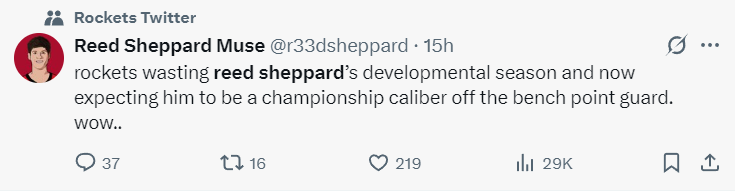 但休媒对斯通的言论很不满:火箭浪费了谢泼德一年宝贵的成长机会,现在却指望他在替补席上打出关键表现。。。。。哇。。。。。